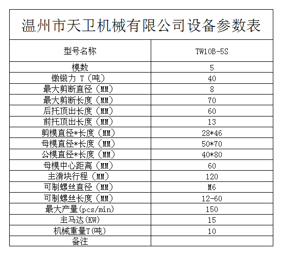 您當(dāng)前的位置:首頁 / 產(chǎn)品中心 / 五模五沖多工位冷鐓機(jī) / └ TW10B(M6)多工位冷鐓機(jī) / TW10B-5S全自動多工位冷鐓機(jī)