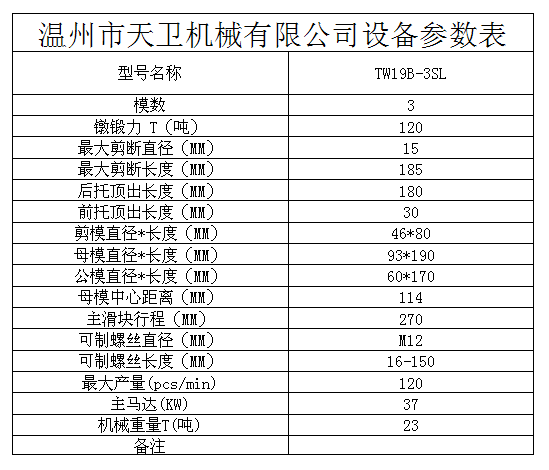 您當前的位置:首頁 / 產品中心 / 三模三沖冷鐓機 / └ TW19B(M12)多工位冷鐓機 / TW19B-3SL全自動多工位冷鐓機